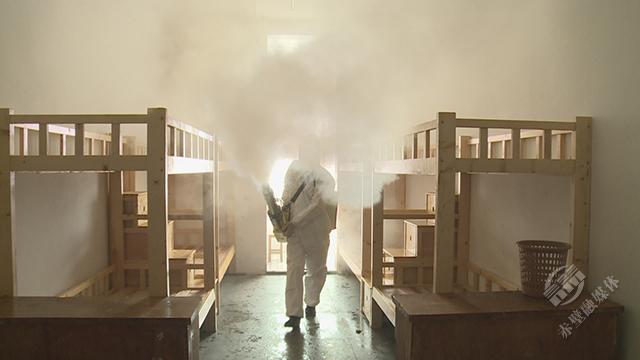 機(jī)電學(xué)校集中隔離點是赤壁市較早清空的隔離點之一。3月10日,記者來到機(jī)電學(xué)校,疾控中心的工作人員正在這里開展消殺工作。