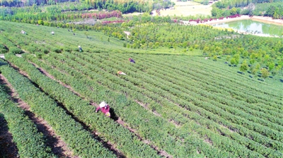 1日,咸安區(qū)汀泗橋鎮(zhèn)黃荊塘村茶園綜合體,村民穿梭在綠意蔥蘢的茶園里忙著采茶。該村茶園綜合體今年可采摘面積2000余畝,規(guī)劃打造萬畝茶園。