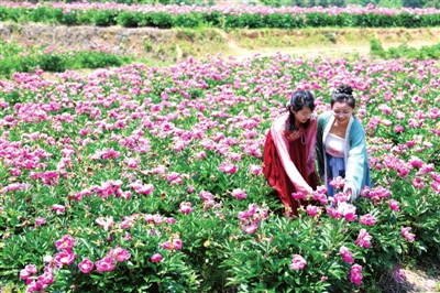 5月初,地處幕阜山綠色產業(yè)帶的銅鐘鄉(xiāng)銅鐘村丫吉中藥材種植基地,150多畝芍藥花怒放吸引游人前來看花賞景。