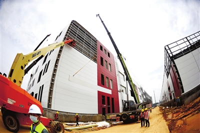 25日,赤壁市維達力實業(yè)(三期)項目正抓緊建設(shè)。該項目位于中伙鋪工業(yè)園,總投資35億元,占地面積163畝,主要生產(chǎn)微晶玻璃、柔性屏,是赤壁市重點在建項目之一。目前正在進行廠房墻面建設(shè)和設(shè)備安裝調(diào)試,預(yù)計7月全面建成投產(chǎn)。 咸寧日報全媒體記者 袁燦 攝