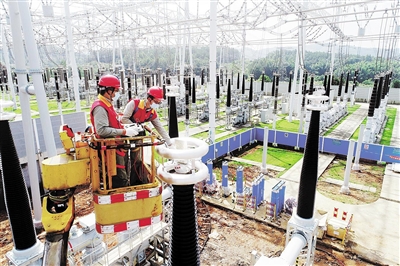 6月25日,在咸安區(qū)馬橋鎮(zhèn),國(guó)家電網(wǎng)湖北送變電工程有限公司200名施工人員,在500千伏咸寧變電站擴(kuò)建區(qū)內(nèi)安裝電氣設(shè)備及土建施工作業(yè)。當(dāng)日,經(jīng)過3個(gè)月工程建設(shè),500千伏咸寧變電站改、擴(kuò)建工程進(jìn)入主設(shè)備安裝階段,為7月份咸寧地區(qū)迎峰度夏投產(chǎn)送電創(chuàng)造條件。作為湖北與江西電網(wǎng)聯(lián)絡(luò)的重要通道,500千伏咸寧變電站于2006年6月建成投運(yùn),前后經(jīng)過多期擴(kuò)建和改造。