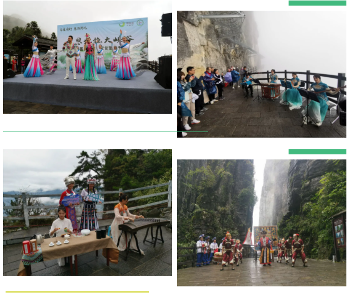 恩施大峽谷七星寨景區(qū)索道上站觀景平臺上,隨著恩施市文旅形象歌曲《情漫恩施》的精彩呈現(xiàn),精品演藝和非遺進景區(qū)系列活動正式拉開帷幕。男聲獨唱《大峽谷有哈數(shù)》、儺戲表演《開葷敬酒》、歌舞《我在恩施等著你》等精品演出節(jié)目向游客送上一場精彩的文化藝術(shù)盛宴,同時獻上一份特別的中秋國慶雙節(jié)禮物。