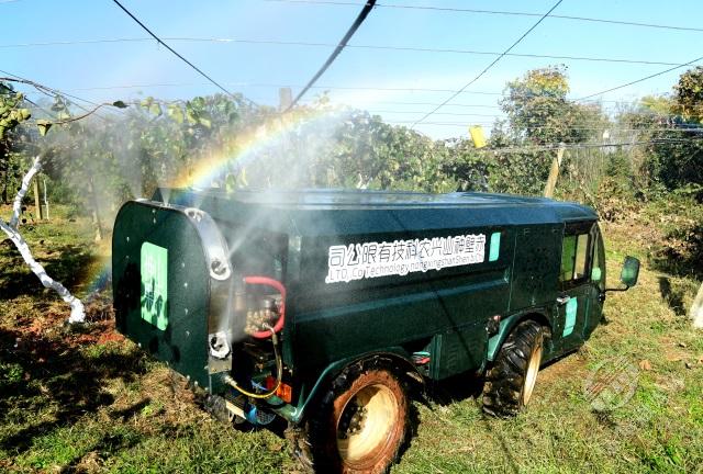 “一輛植保車輕輕松松一小時噴灑作業(yè)可以達到25畝以上,這是人工一天‘拉了瓦’也到達不了的的作業(yè)量。”11月12日,在神山興農(nóng)公司位于官塘驛鎮(zhèn)御屏山村的半島獼猴桃基地,熊堃坐進1.5米身高的袖珍新能源植保車,拉動手閘,轉動方向盤,一番操作后,通過7條噴孔噴出的霧狀藥液在陽光下形成一道彩虹。