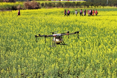 3月4日,在咸安區(qū)馬橋鎮(zhèn)建國畈油菜花海,一臺(tái)無人機(jī)盤旋在油菜花田上方,為油菜噴施環(huán)保復(fù)合肥。據(jù)咸安區(qū)農(nóng)業(yè)農(nóng)村局介紹,這是通過無人機(jī)來給油菜送“套餐”,無人機(jī)攜帶著精心調(diào)配的藥肥,能夠快速的對(duì)油菜大面積噴灑覆蓋,作業(yè)效率和效果顯著優(yōu)于人工噴施。