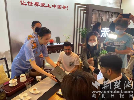 活動期間,赤壁青磚茶亮相論壇,成為現場焦點,吸引了眾多嘉賓駐足、品嘗、合影。在主論壇所在地的紫荊廳茶歇區(qū),記者看到,茶藝師精心準備了赤壁青磚茶,供嘉賓品嘗,觀看茶藝表演,感受湖北茶的獨特魅力。