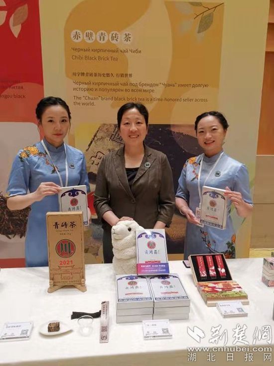 在主論壇的湖北省茶業(yè)集團股份有限公司展位,帶來了旗下湖北省趙李橋茶廠有限責任公司生產的川字牌二合一型青磚茶。該款產品去年作為捐贈物資之一,被湖北省人民政府回贈給蒙古國?!把騺聿柰敝忻捎颜x傳佳話。