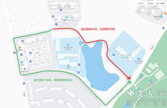 這條路位于咸寧市城區(qū),是一條連接銀桂路和十六潭路的城市支路,于2021年3月建成通車,被命名為鏡湖路?!剁R湖路微循環(huán)工程公示牌》顯示,“本次規(guī)劃道路起點(diǎn)位于銀桂路,終點(diǎn)位于鏡湖路,規(guī)劃全長358.46米,設(shè)計(jì)車速20千米/小時(shí),為城市支路。該路建成增加了馨園小區(qū)357戶居民車流集散通道,車輛進(jìn)入十六潭路的距離大大縮小,極大方面了居民出行;同時(shí)分流了繞行銀桂路車流,有效緩解了銀桂路交通壓力。
