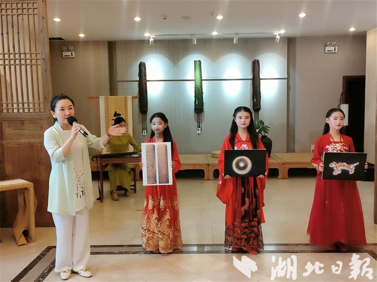 隨后,文物故事《金龍、玉璧、山簡》、武當山宮觀道樂《春到御花園》、養(yǎng)生文創(chuàng)《武當千年艾灸》、健康舞《本草綱目》、文化藝術(shù)《書畫武當》、琴韻太極《精忠詞》、文化分享《老子養(yǎng)生》《千秋國飲武當山茶》等節(jié)目一一精彩呈現(xiàn),充分展示了武當山濃厚的文化底蘊。一個多小時的演出,為觀眾們呈現(xiàn)了一場豐盛的文化大餐。