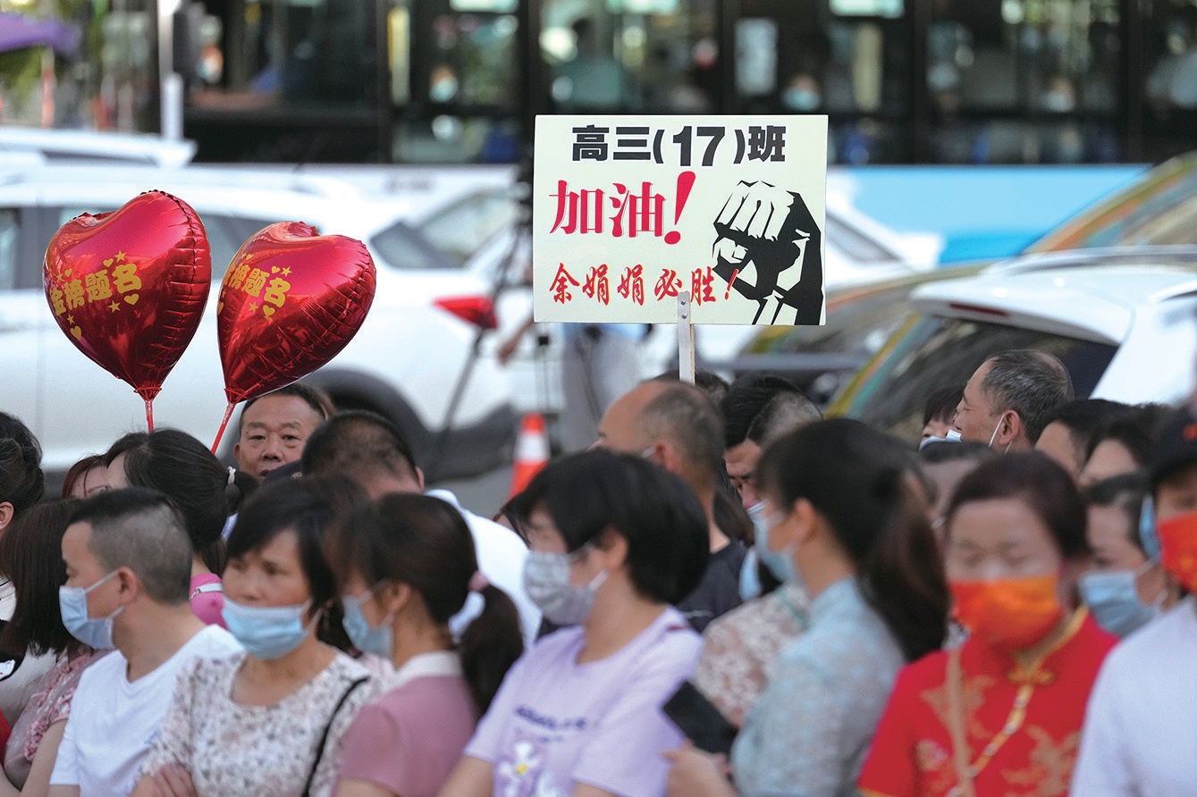 東風(fēng)高中考點(diǎn)內(nèi),考生執(zhí)筆為劍,披荊斬棘;考場外,家長們頂著烈日,翹首以盼?!爸灰銈兌分景簱P(yáng),我汗?jié)褚律烙趾畏粒 笔嵌嗌俑改傅男穆暋?/p>