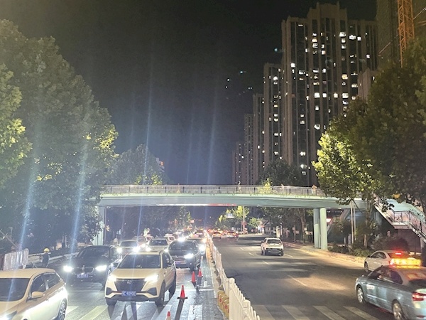 昨晚10點,上海路漢江師范學(xué)院過街天橋開放通行。