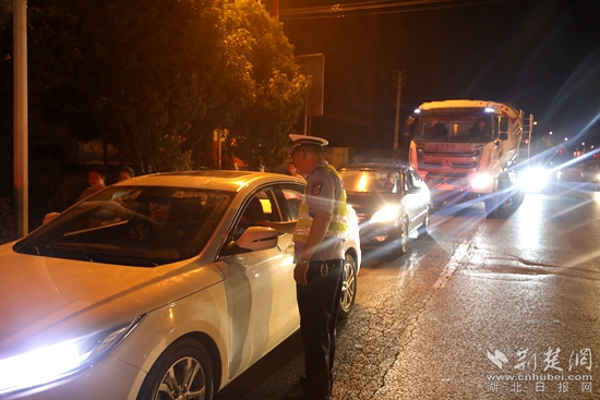 崇陽(yáng)交警在重點(diǎn)路段嚴(yán)查酒駕醉駕。通訊員 供圖