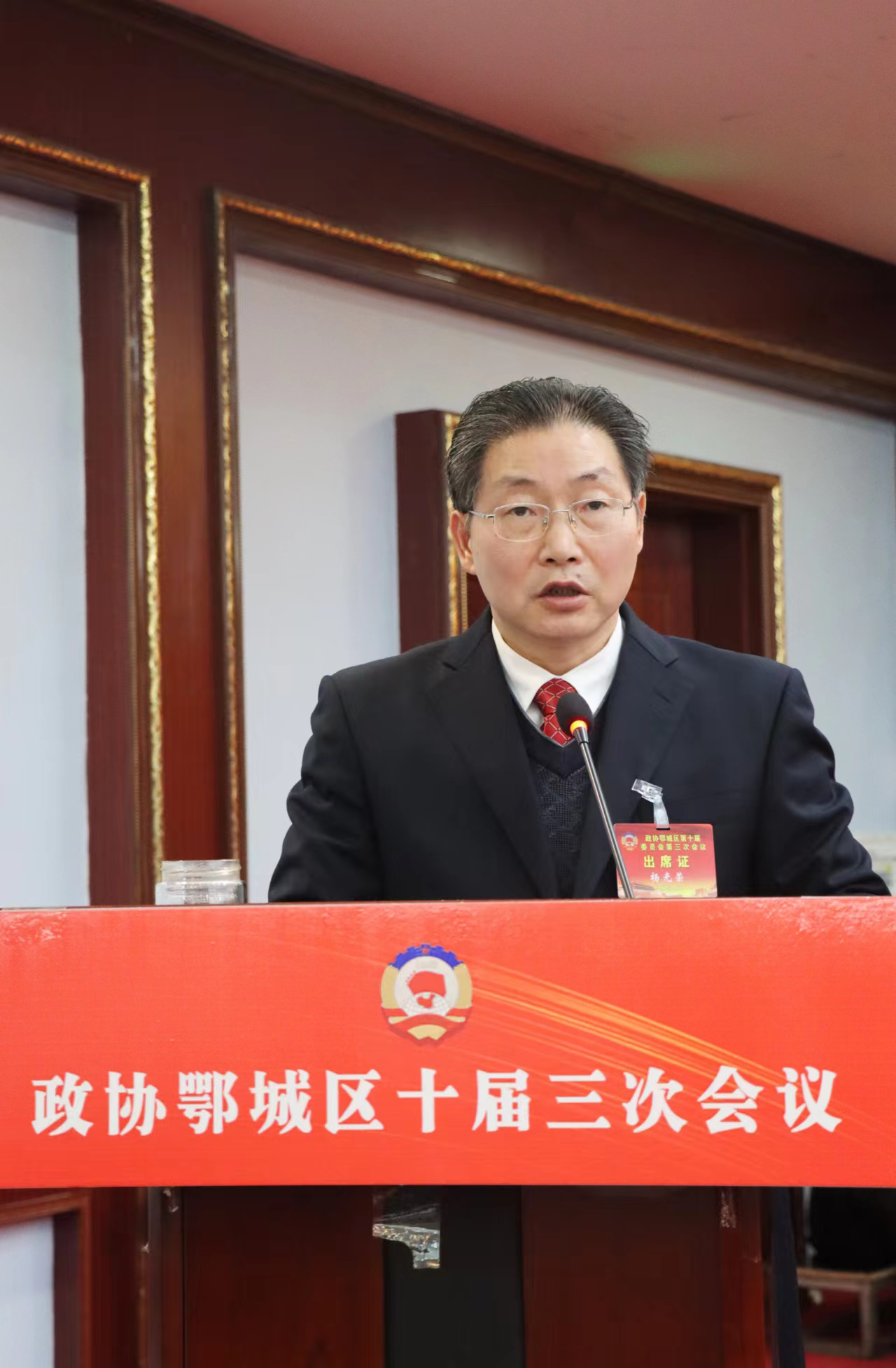 鄂城區(qū)政協(xié)主席楊光榮代表政協(xié)鄂城區(qū)第十屆委員會常務委員會作工作報告。胡小軍 攝
