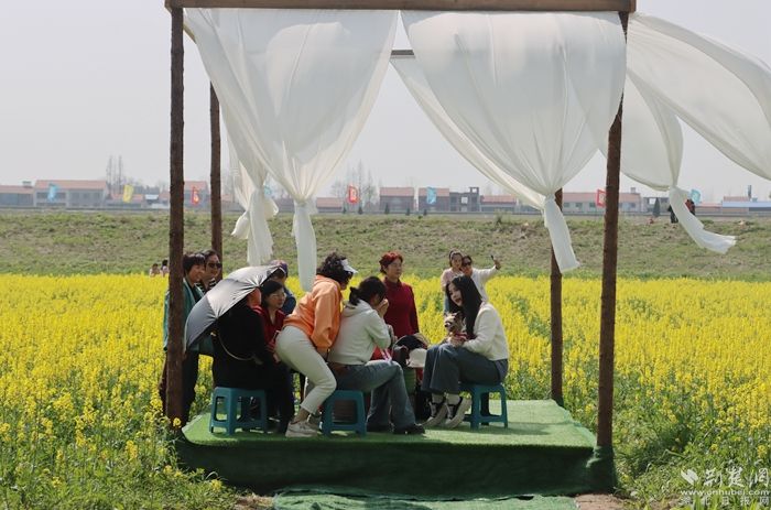 黃澄澄的油菜花田如金色海洋般廣袤無垠,春風(fēng)拂過,花浪起伏,散發(fā)出令人陶醉的清新香氣。游客們紛紛踏入這片花海,感受春天的氣息,品味鄉(xiāng)土的韻味。