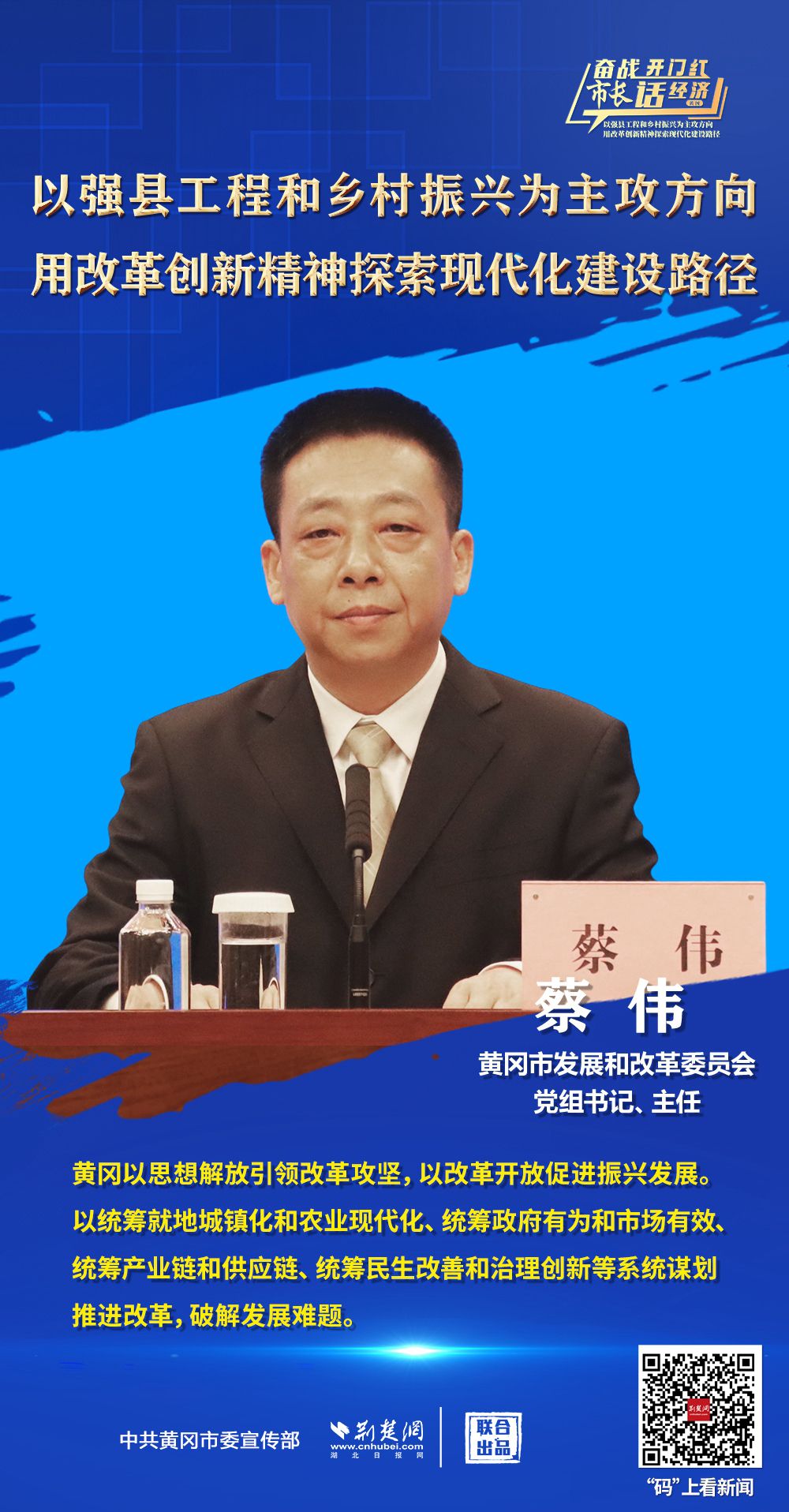 3月29日下午,省政府新聞辦舉行“奮戰(zhàn)開(kāi)門紅 市長(zhǎng)話經(jīng)濟(jì)”系列新聞發(fā)布會(huì)第十六場(chǎng),黃岡市介紹“以強(qiáng)縣工程和鄉(xiāng)村振興為主攻方向 用改革創(chuàng)新精神探索現(xiàn)代化建設(shè)路徑”相關(guān)情況,并回答主流媒體提問(wèn)。