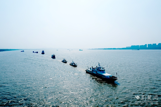 當(dāng)天上午9時許,各船艇嚴(yán)陣以待,海事旗迎風(fēng)招展,觀禮臺人頭攢動……隨著總指揮一聲令下,指揮艇聲號長鳴,演習(xí)正式開始。