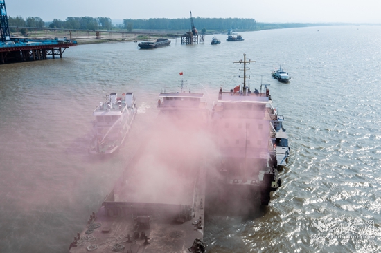 記者看到,演習(xí)由局交管中心對演習(xí)水域?qū)嵤┡R時交通管制、航道部門調(diào)整演習(xí)水域航標(biāo)開始,演習(xí)科目為先導(dǎo)索脫落打撈、船舶甲板起火、船舶溢油處置、故障船舶拖帶作業(yè)、人員落水應(yīng)急處置等多科目綜合性演習(xí),實景模擬了燕磯大橋后續(xù)施工作業(yè)可能遇到的各種水上突發(fā)事件。