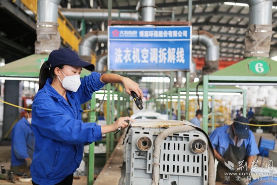劉國平介紹,今年1至7月份,包括電視、冰箱、洗衣機、空調(diào)和電腦在內(nèi)的“四機一腦”共拆解57.85萬套,廢舊汽車回收拆解509臺,小家電拆解6283噸。去年,企業(yè)拆解舊家電超過100萬臺,產(chǎn)出金屬銅3000噸,“相當(dāng)于中色大冶的第五座礦山”。