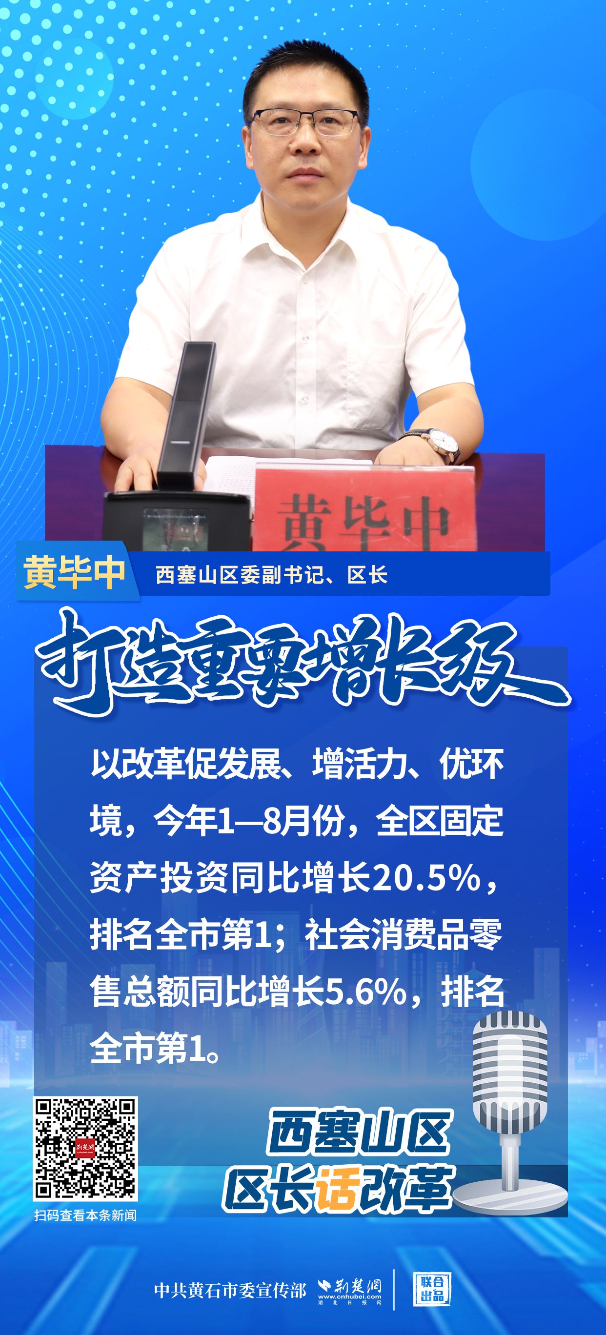 荊楚網(wǎng)(湖北日?qǐng)?bào)網(wǎng))訊(記者 阮瓊 劉璐 通訊員 王登虎)9月20日,黃石市召開“打造重要增長(zhǎng)極 縣(市、區(qū))長(zhǎng)話改革”第五場(chǎng)新聞發(fā)布會(huì),介紹西塞山區(qū)打造重要增長(zhǎng)極、深化改革工作情況。