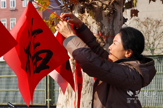 書(shū)協(xié)志愿者寫(xiě)春聯(lián)。阮瓊 攝