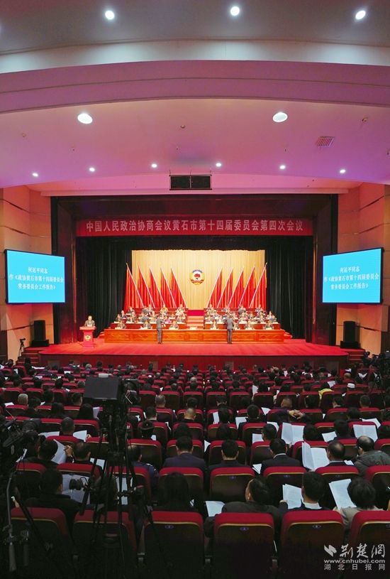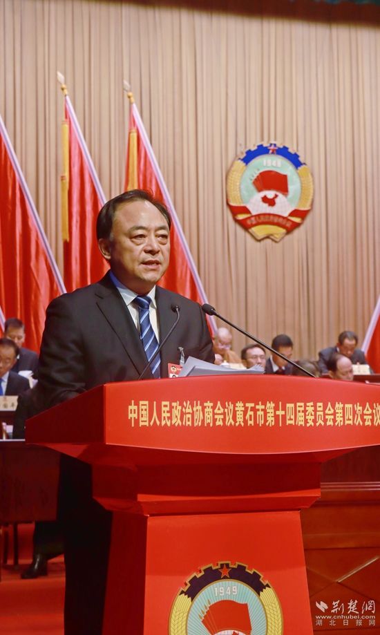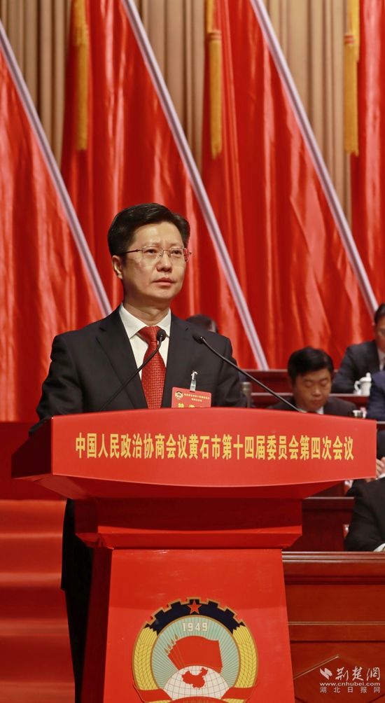 2月6日,中國人民政治協(xié)商會議黃石市第十四屆委員會第四次會議在黃石磁湖劇院開幕。中共黃石市委書記郄英才講話。