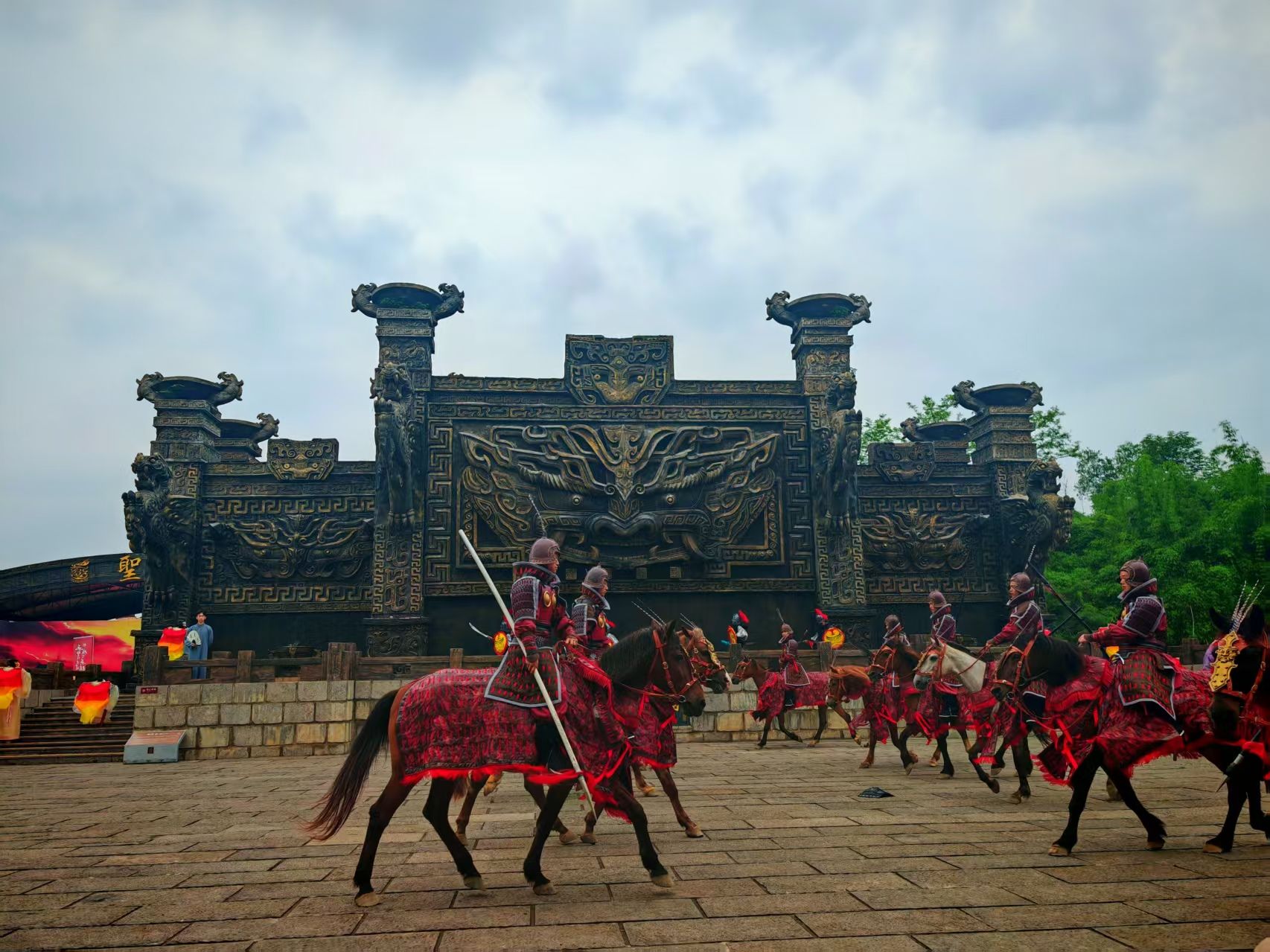 “各位看官,三國演義第四十四回到第五十回說道,曹操不費吹灰之力擁有了荊襄水軍,號稱80萬大軍向長江推進……”5月1日上午9時,隨著“說書人”一聲高喊,三國赤壁古戰(zhàn)場城門緩緩打開,10名戰(zhàn)士策馬躍出,戰(zhàn)鼓響起,劉備、關羽、張飛等三國人物也陸續(xù)出場,現(xiàn)場掌聲不斷。沉浸式場景將數(shù)百名圍觀游客穿越回1800多年前的三國時空。