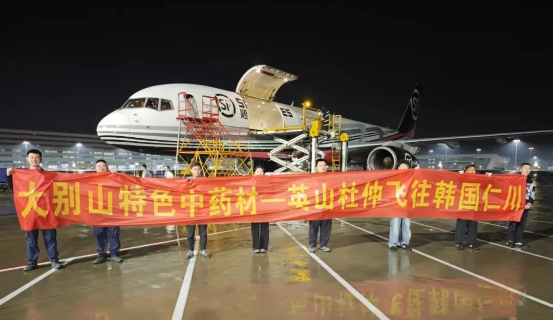卸貨、稱重、貼標、安檢、打板、上車,一氣呵成……5月15日下午,86箱1.37噸英山杜仲,在黃岡城市貨站完成預(yù)報關(guān)、稱重等流程后,運往花湖國際機場,搭乘次日5時11分飛往韓國仁川的順豐航空O3141航班,僅3小時19分后便抵達目的地。