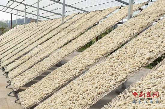而這樣的環(huán)境催生了“豆絲”這一鄂州傳統(tǒng)美食。除了大米外,綠豆、黃豆、葛根等“豆絲”原材料生長在山溝、溪邊、林中?!懊磕耆攵?,幾乎家家起大灶開始制作豆絲,風(fēng)干后可以留存整個(gè)冬天。”周楊介紹。