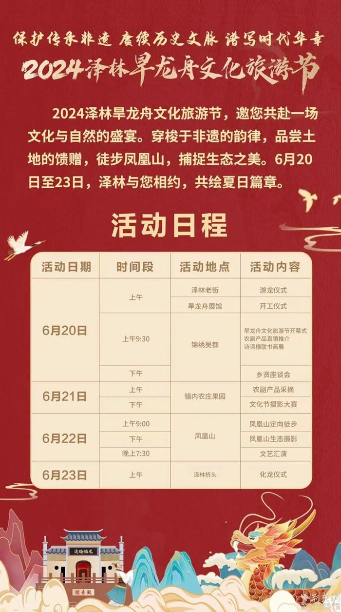 為了傳承這一國家級非遺,助推“澤林旱龍舟文化旅游品牌”的建設(shè),今年已是澤林鎮(zhèn)舉辦“澤林旱龍舟文化旅游節(jié)”的第四個年頭。澤林鎮(zhèn)始終堅持進一步深挖文化魅力,堅定走好“以商養(yǎng)文、以文促商、文商互益”的文商融合發(fā)展新路子。