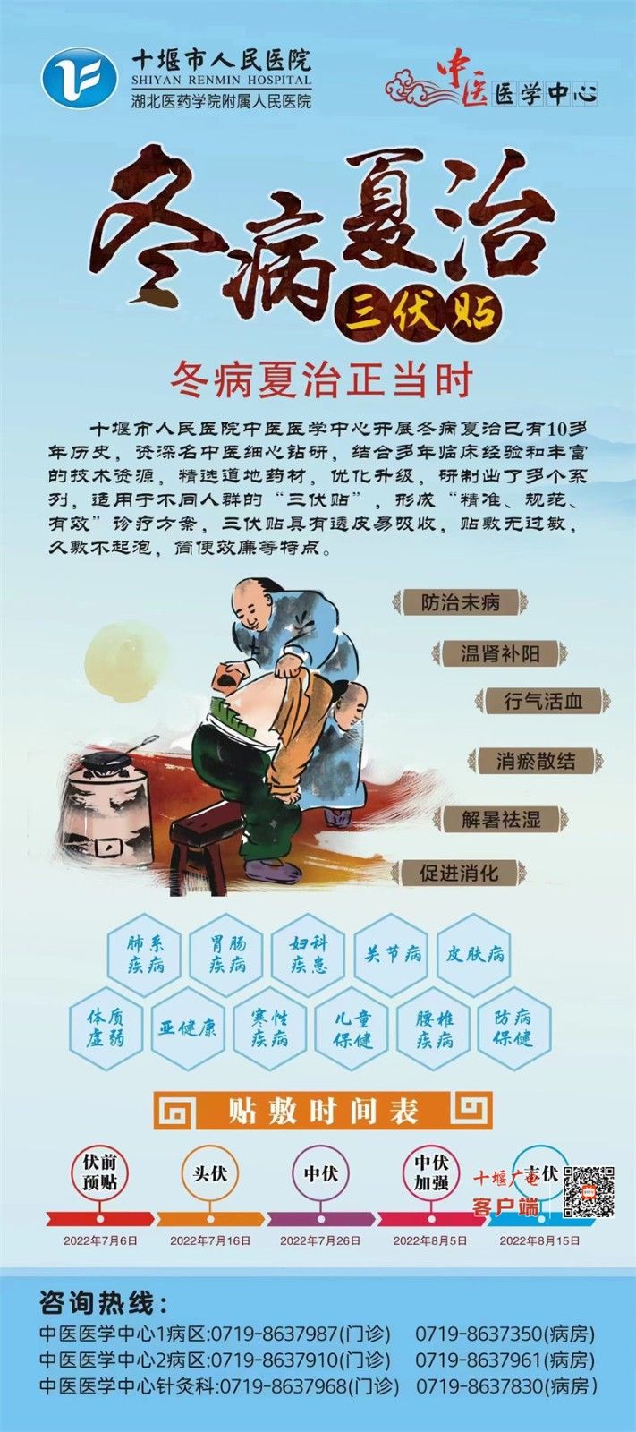 十堰廣電訊(全媒體記者 張焱)三伏天是一年中陽氣最旺盛的季節(jié),也是“冬病夏治”的黃金時(shí)間,此時(shí)貼敷“三伏貼”能激活人體免疫力,達(dá)到增強(qiáng)機(jī)體抵抗力的作用。今天上午,記者從市人民醫(yī)院中醫(yī)醫(yī)學(xué)中心了解到:中心開展的“冬病夏治”三伏貼于今日“火熱”開貼。