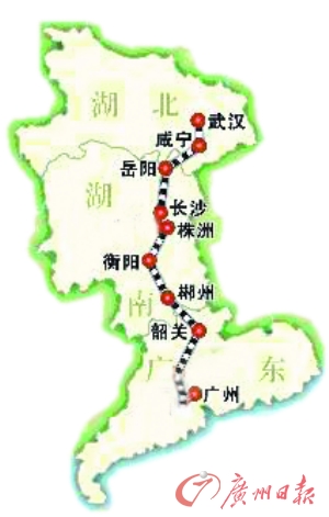 按照目前的列車時刻,廣州至長沙需6~8小時;而廣州至武漢則需10個小時左右。武廣高鐵通車后,廣州至長沙只需2個小時,到武漢只需3小時。城市之間距離的縮短,首先帶來的是粵、湘、鄂三地人員的流動。屆時,佛山人可以搭乘武廣高鐵,早上在佛山飲早茶,中午到長沙吃湘菜,下午在武漢登黃鶴樓嘆江風。
