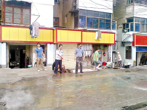 在武昌楊園路,市民劉先生昨天拍到了城管清洗路面的場景。劉先生說,這里一些餐飲攤子常年占道經營,好好的人行道變成了黑色人行道。最近幾天,城管人員反復清洗被污染的路面:堿水泡、鏟子鏟、多功能路面去污機洗刷、清水沖洗,18般“武藝”都使出來了,挺不容易,要“贊”一個。(右上圖)